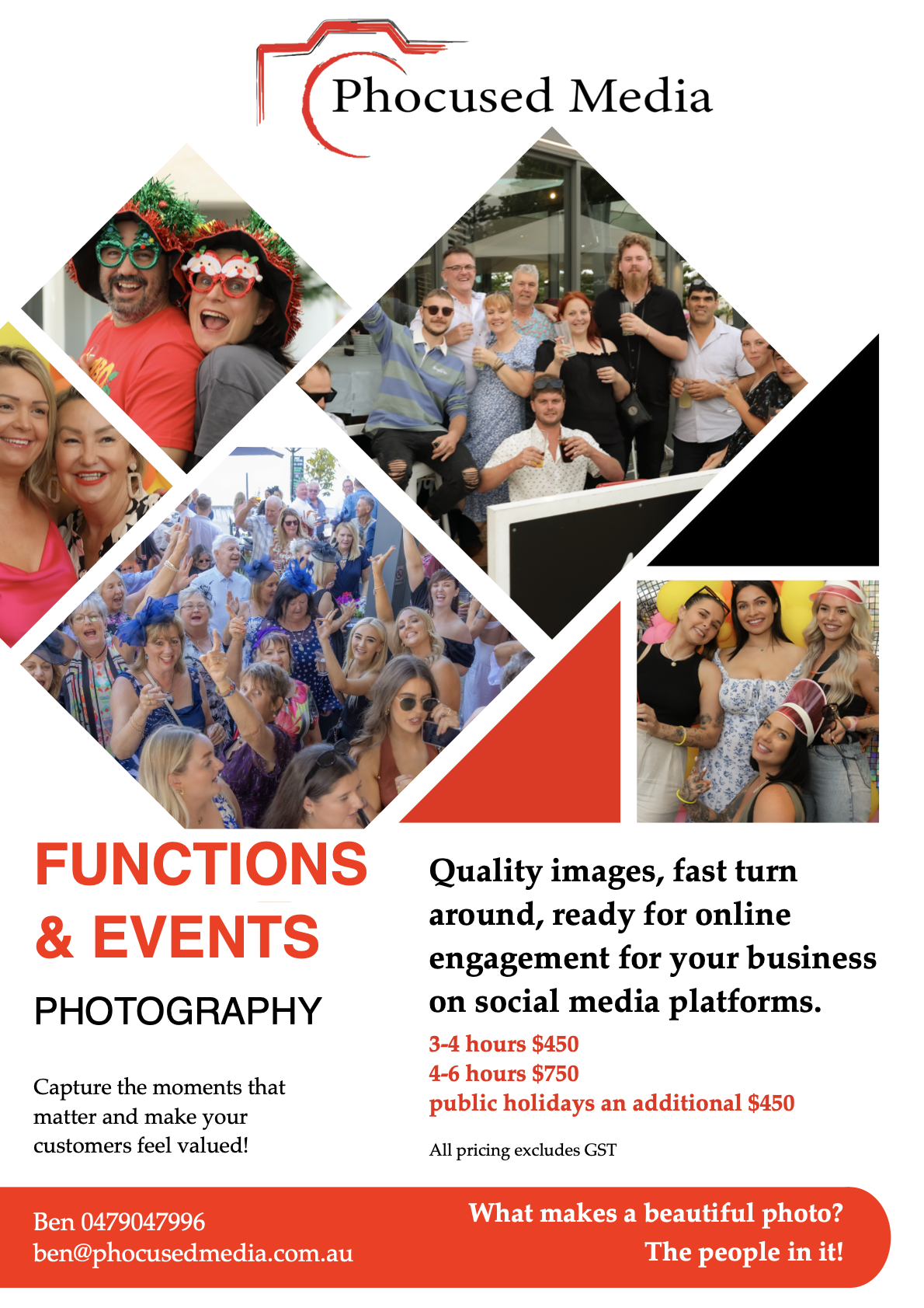 At PhocusedMedia, we are dedicated to capturing the special moments of your functions and events through our professional photography services. Whether it's a corporate function, a social event, or a special celebration, our experienced photographers are committed to preserving the essence and energy of your gathering.